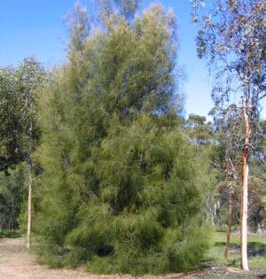Form: Spiky evergreen shrub with small flat, shiny green leaves