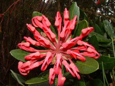 Erect shrub or small tree 1.8 to 8.0 metres. Large red flowers in spring/early summer. Ornamental. Flower nectar can make a sweet drink